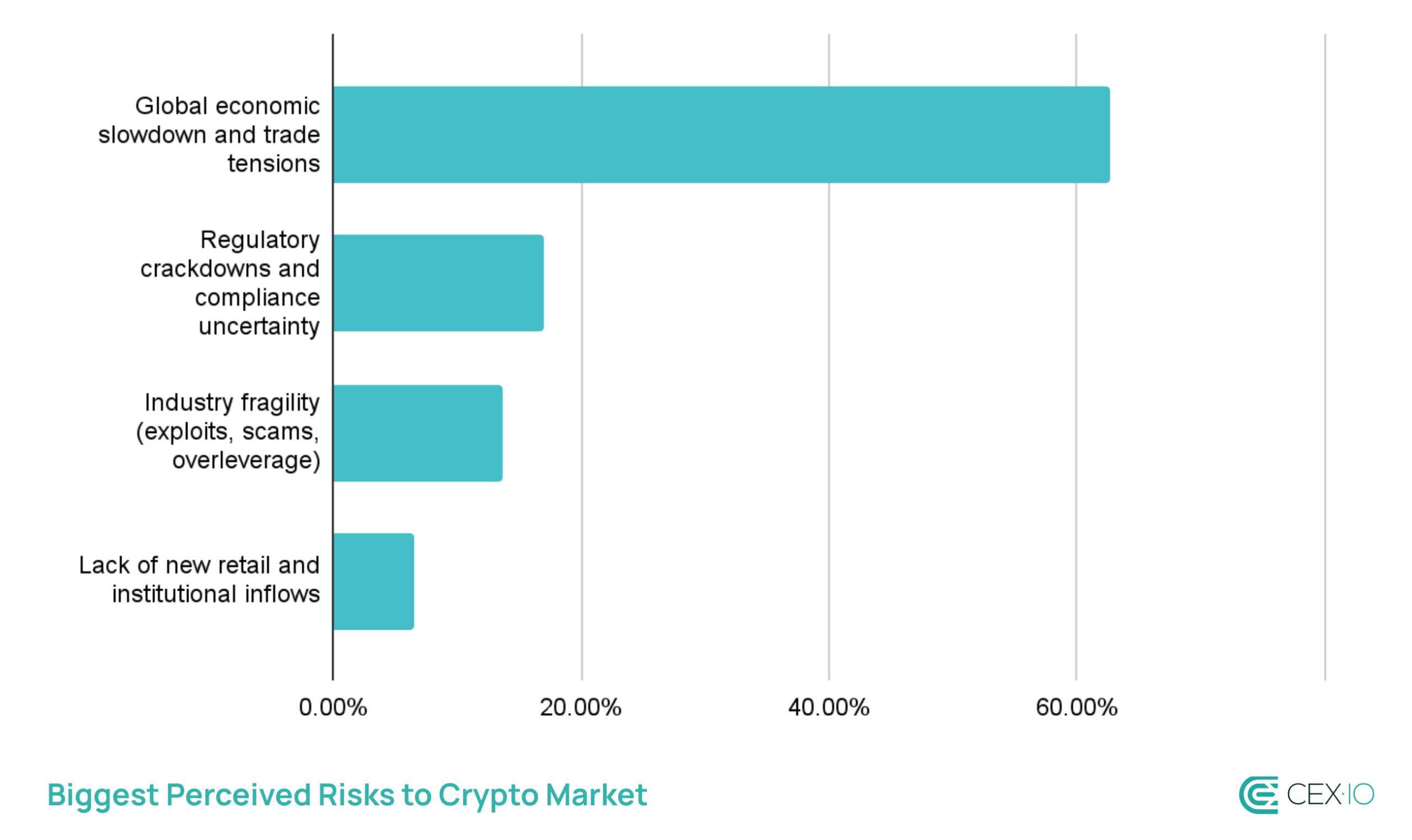 The biggest perceived threat comes from the global economic slowdown and trade tensions (63%), underscoring how macro pressures outweigh regulatory or internal industry risks.