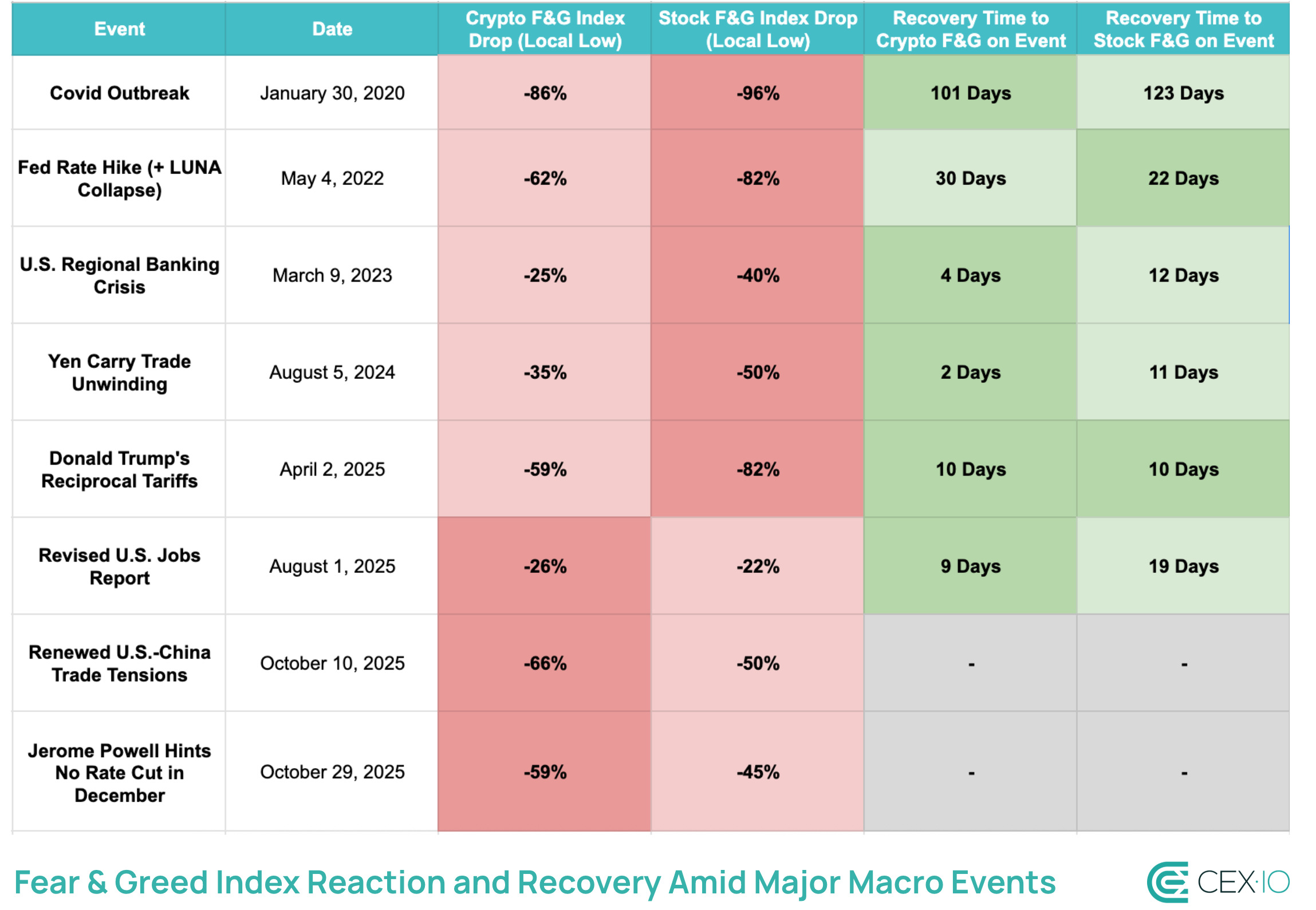 Based on past macro shocks of similar scale, it typically takes around 20 to 30 days for the Crypto F&G Index to recover to pre-event levels, suggesting early November as a potential recovery window. However, this recovery could take longer if macroeconomic tensions escalate or if the market slips into a deeper correction phase.