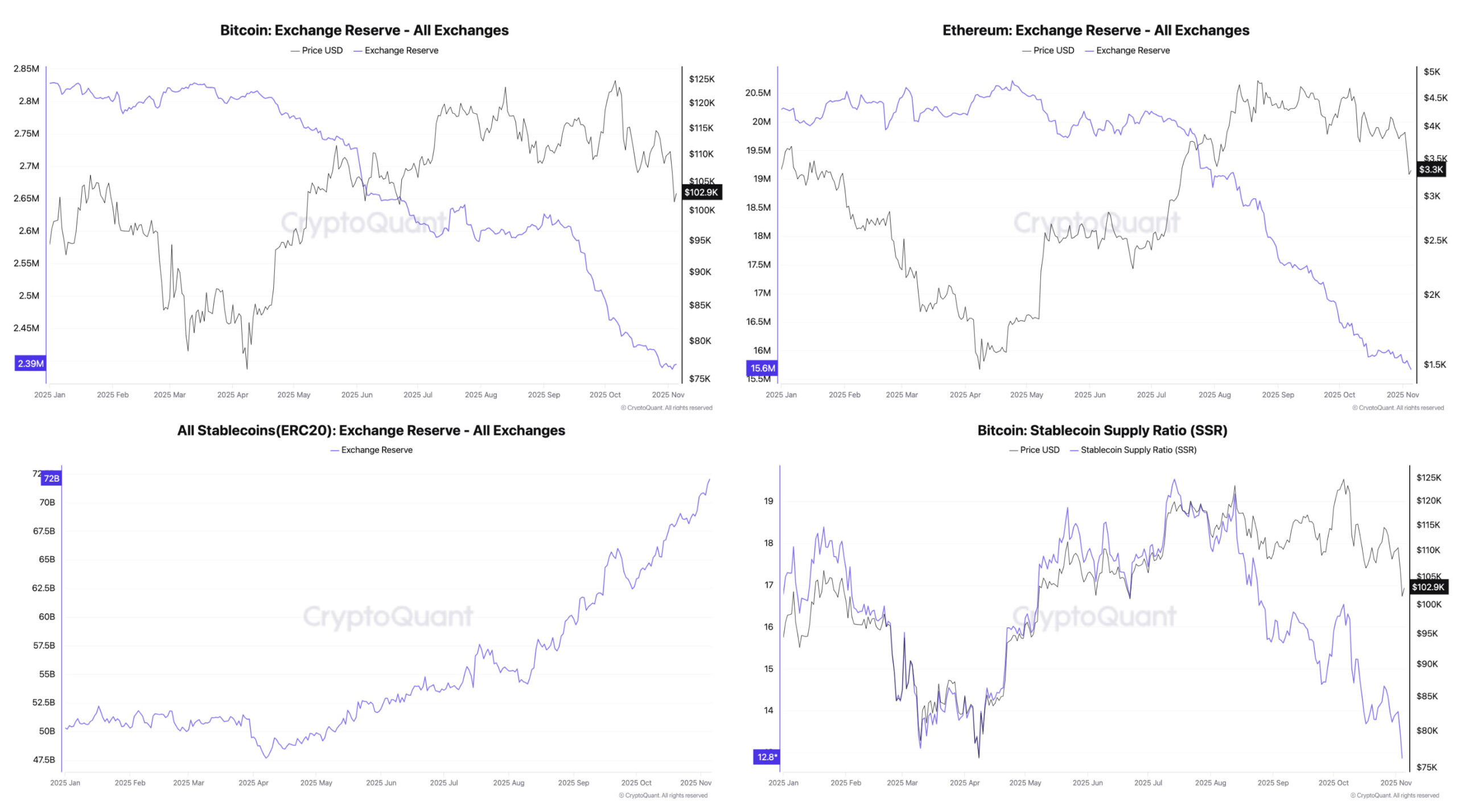 Chart: Exchange Reserves and SSR Dynamics in 2025. Source: CryptoQuant